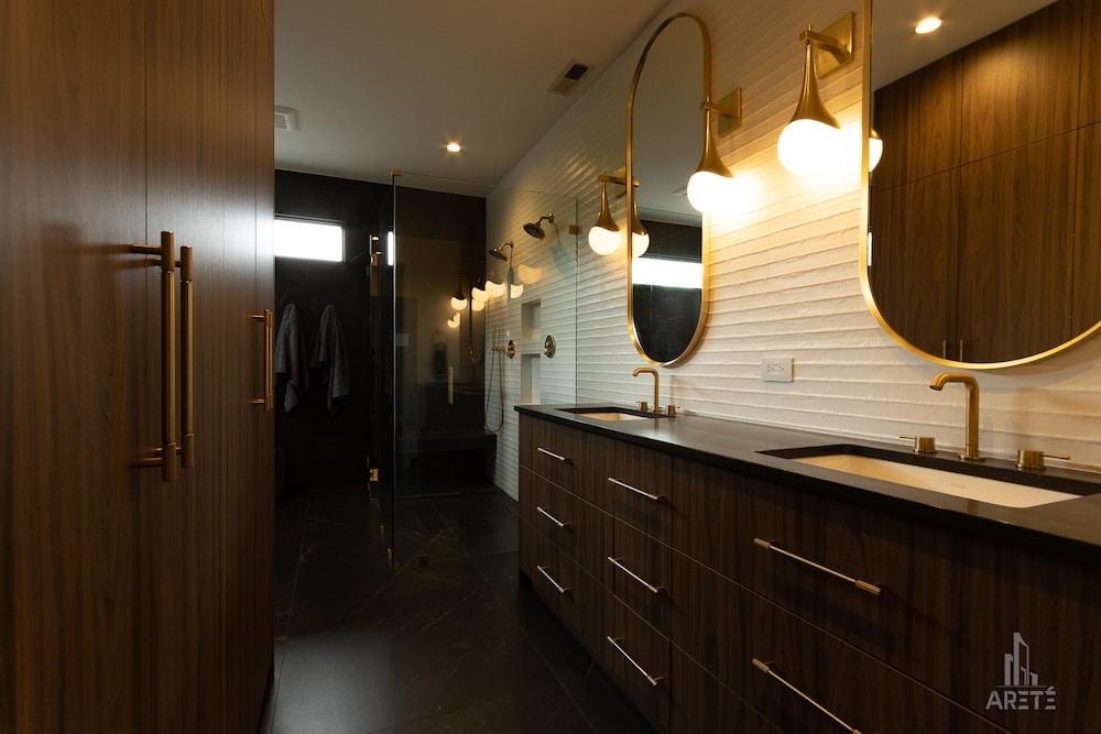 By combining the artistry of Modern Organic design with the rigors of high-performance construction, Areté Renovators has created a sanctuary that is as structurally sound as it is visually breathtaking. This Chicago residence now features a master suite that offers a true spa experience, grounded in the timeless beauty of stone, wood, and gold.